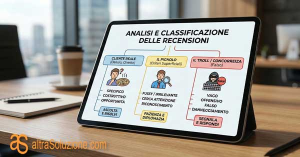 Prima di scrivere anche solo una virgola, devi capire chi hai di fronte. Non tutte le recensioni negative sono uguali. Una buona categorizzazione ti salva la vita e ti aiuta a scegliere le parole giuste: