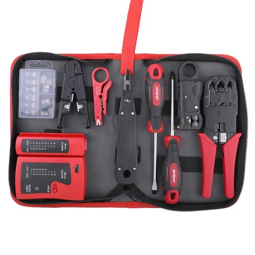 Hi-Spec 9 Pezzi Set di Strumenti per Test Cavi di Rete per CAT5, CAT6, RJ11, RJ45. Crimpatrice Ethernet LAN, Punchdown, Spellafili Coassiale e Altri Accessori